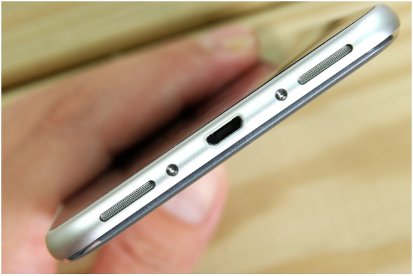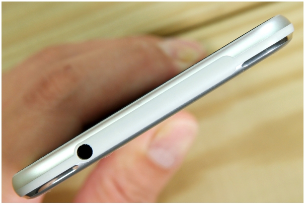 其實看完上方的四週後,應該會覺得有這麼一點點像 iPhone 6 Plus,不過又有點不一樣,像是一般全金屬機身都不會支援 NFC,而 M812 為了突破這項限制,特別在下方的機身再開孔置入 NFC 元件,讓全金屬機身同樣有了 NFC 的連線功能。