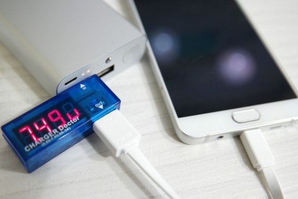 而電壓為 7.49 V,比理想值低了一些,但透過快充確實也讓我們出門在外也可以用行動電源縮短充電時間,真的很方便。