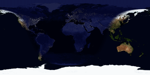安裝完後回到桌面看看,馬上就會變更為全世界的版圖囉,而且有一個突起的半圓黑黑的,就是目前黑夜的範圍,這是即時的,預設是3分鐘會更新一次,前提是網路要連線中啦。