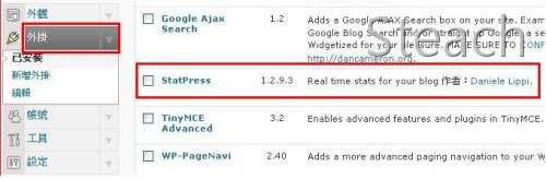 首先下載StatPress外掛,目前版本是1.2.9.3