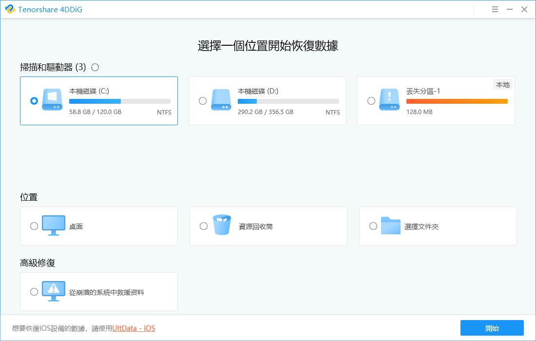 資料救援軟體「Tenorshare 4DDiG Win」:https://www.tenorshare.tw/products/any-data-recovery.html