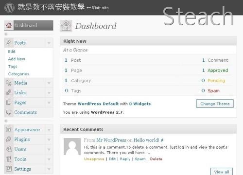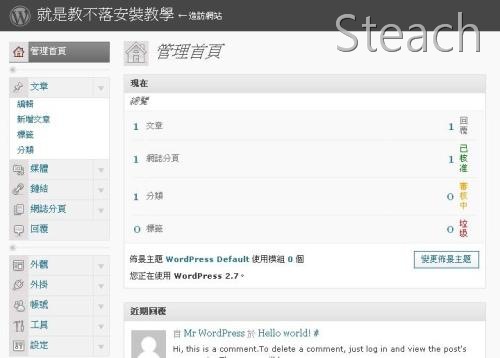 《利用空間後台安裝Wordpress2.7英文版-本頁面》