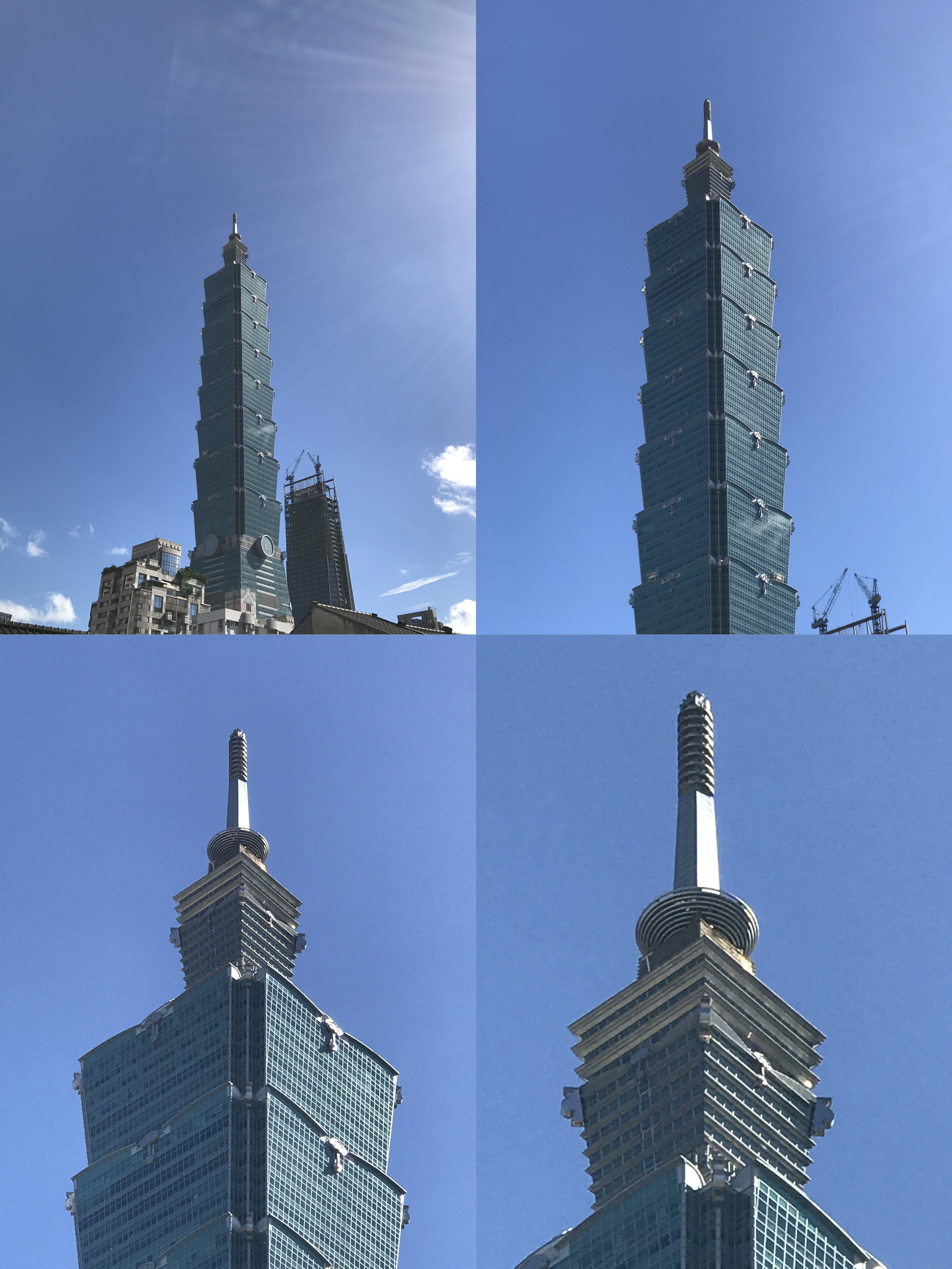 以下這張四格照片拼圖,上半部左邊為原始的廣角鏡拍攝畫面,右邊為切換為 2 倍長焦鏡,這二個都是真正的原始鏡頭拍攝,所以畫質都不會有所影響;下半部為數位變焦拍攝,左邊為 5 倍變焦拍攝,右邊為 10 倍變焦(最大),以小圖來說其實是堪用的,放大也還可以接受,大家可以點擊圖片看原始大圖就知道阿湯的意思了,不過畢竟是數位變焦,你也不能要求他要能夠多清晰,重點是能夠拍攝的到。