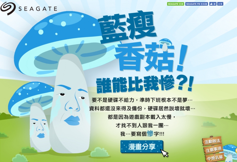 Seagate 藍瘦香菇網路抽獎活動: