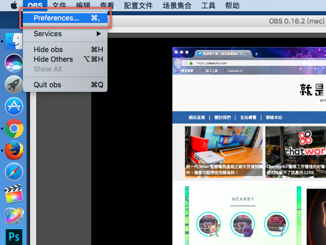 這邊阿湯以 Mac 版的 OBS 為例,進入設定。