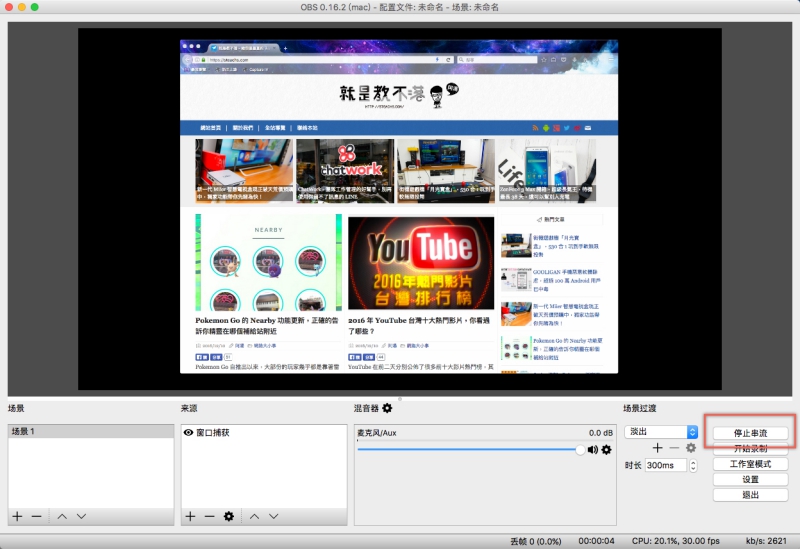 接下來在開始直播前,開始選擇要直播什麼畫面,比如阿湯透過建立場景後,選擇的是電腦的瀏覽器畫面,你也可以選擇你的視訊(視頻捕捉設備),相關設定大家可以自行研究一下,沒有很難。