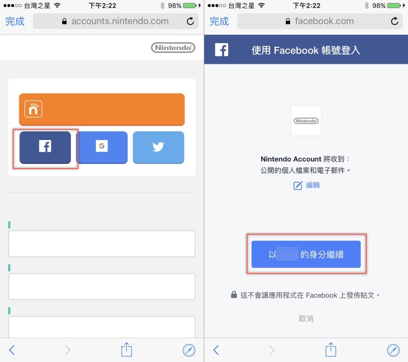 接下來就按 Facebook 圖示登入後,選擇帳號就可以囉,很簡單的。
