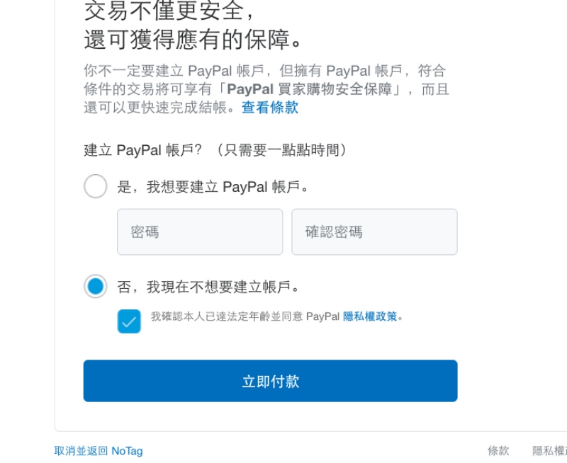 然後,就不要建立帳戶,直接付款吧。