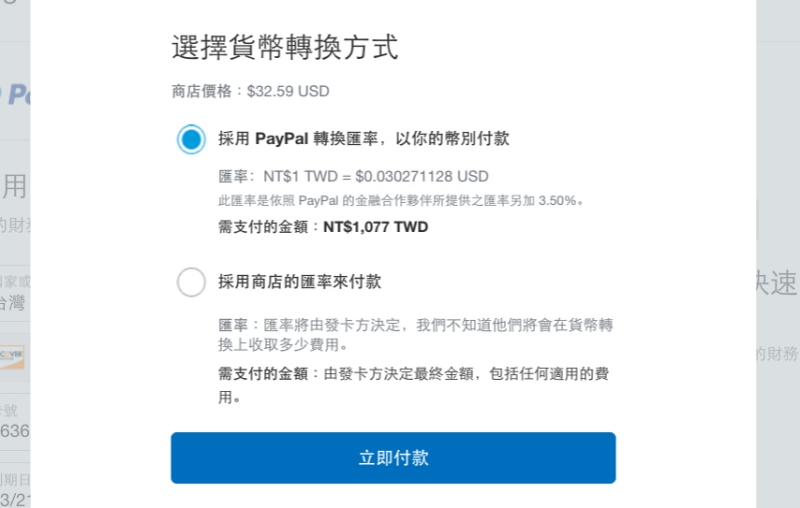 最後這邊可以自己決定,我自己算是沒差太多啦,所以可以用 Paypal 來轉換匯率就可以了。