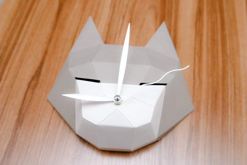 時鐘最後的完成品像這樣,基本上和網站上展示的一模一樣,這是真的可以動的時鐘,用的是一顆三號電池,而且阿湯原本以為他是會有滴搭滴搭的那種秒數指針,結果是圓滑型的,不會有聲音的,真的相當棒啊!