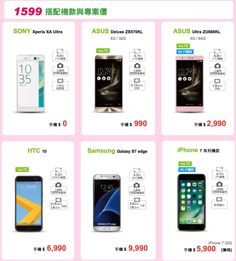 如果你每個月的話務量會大於 1,900 分鐘的話,不妨也可以考量申辦 1,599 的方案(每月網外/市話上限為 2,300 分鐘),還可以搭配高階的旗艦機種來申辦,也是非常不錯的選擇,或者當做是分期購買手機的概念,費用算下來也是比較划算的。