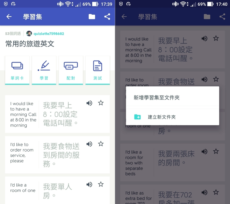 比如我點進其中一個學習集,如果你看一看覺得不錯,可以把他加入到自己的學習集,且可以分類。