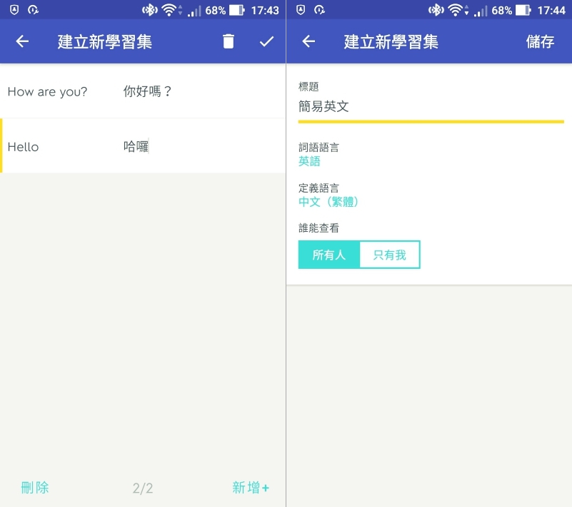 如果你也想建立自己的學習集或分享給其他人,就直接在學習集裡建立後,一行一行的輸入新增內容,建議可以透過網頁版,使用電腦來輸入我相信會更很多,建立之後可以選擇要不要公開,如果公開的話,就可以被搜尋到並加入使用。