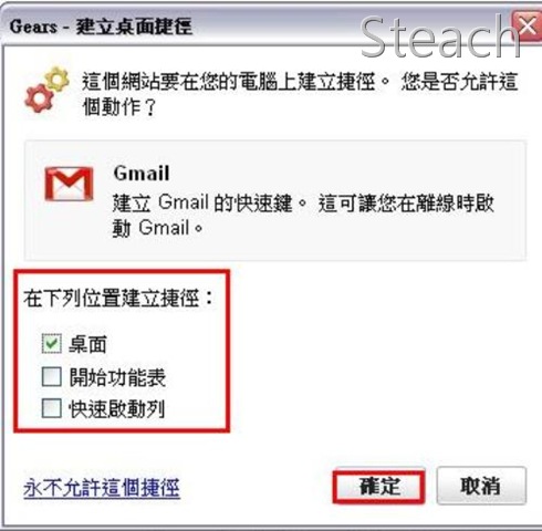 10.選擇你的Gmail離線版要在哪建立捷徑