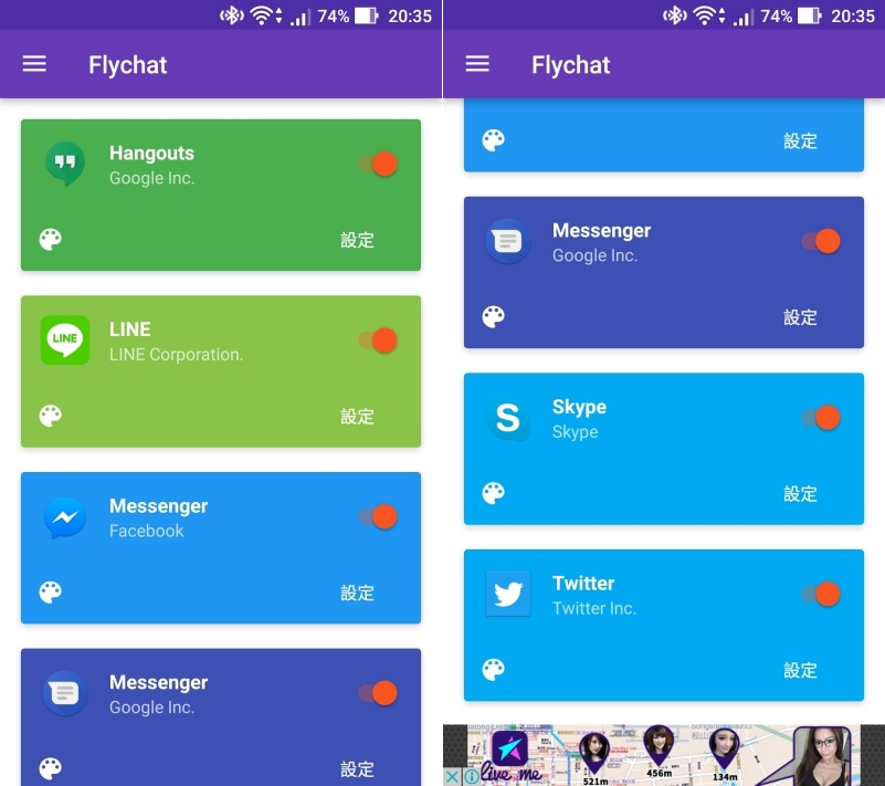 其中還有支援 FB Messenger,由於 FB 本身就有氣泡聊天視窗功能,建議可以關閉,用他原生的就可以了。
