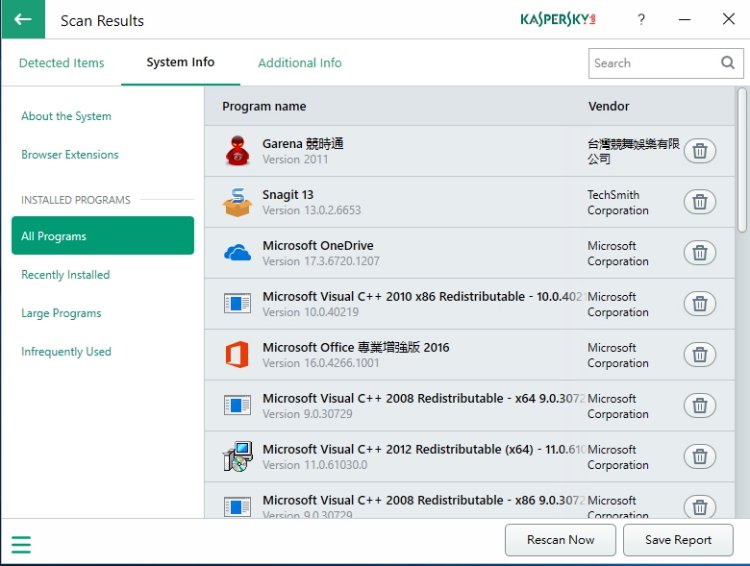 所有的軟體也都能透過 All Programs 裡進行移除。