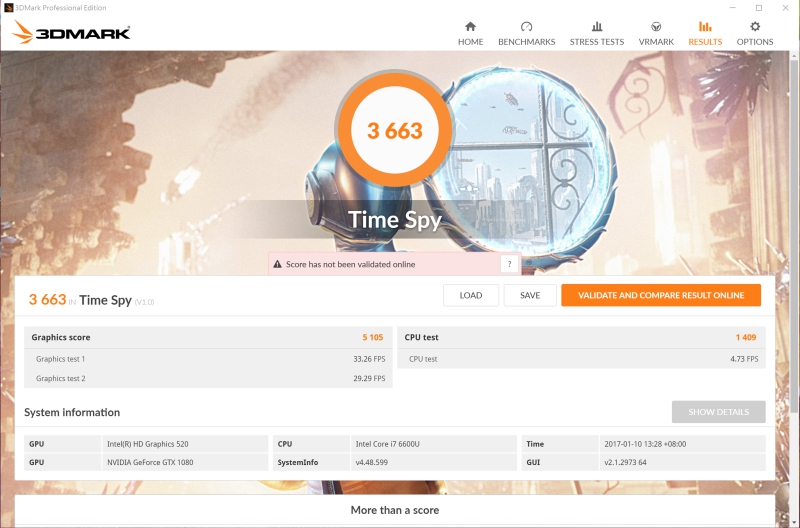 透過 3DMark 的 Time Spy 進行測試,獲得分數為 322 分。