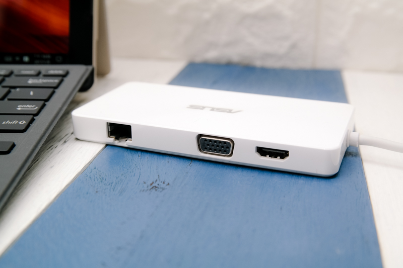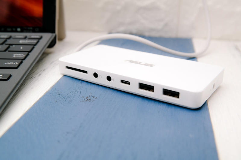而針對擴充的問題,雖然在 ASUS Transformer 3 Pro 上已經配置蠻多的擴充連接埠,但如果你還是覺得太少,可以加購這款 Universal Dock,正面包含 SD 讀卡機、耳機、麥克風接頭、USB TYPE-C 連接埠及兩組 USB 3.0。