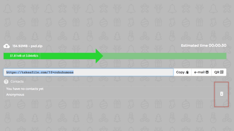 提醒大家,這是一種 P2P 傳檔原理,網站並不會將你的檔案上傳到伺服器,單純只是幫你建立起一個傳檔案的通道,所以你拖曳到畫面時,並不會有上傳的動作,只要提供連結給你的朋友們就可以了(在朋友下載好之前記得都不要關掉頁面,只要你一關掉,這連結就會失效了)。