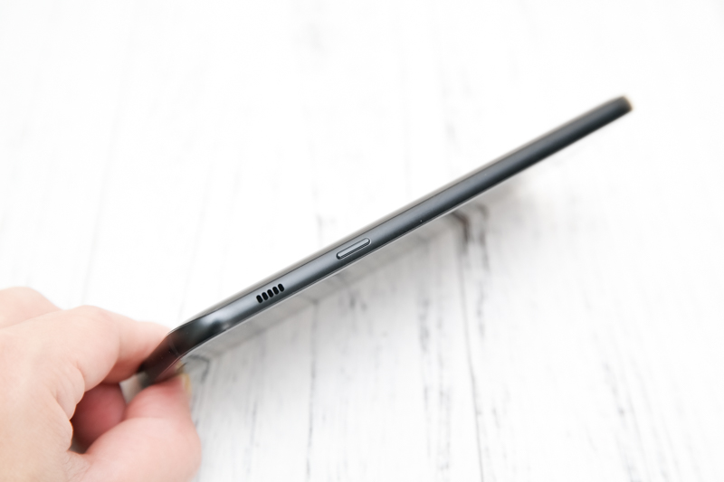 另一側邊為電源鍵,而比較特別的是這次的喇叭孔設計是在側邊,想一想也蠻不錯的,如果是看影片的話,手拿著二側,讓喇叭孔朝上播放出聲音,剛好也不會因為手握住底部而擋住聲音。
