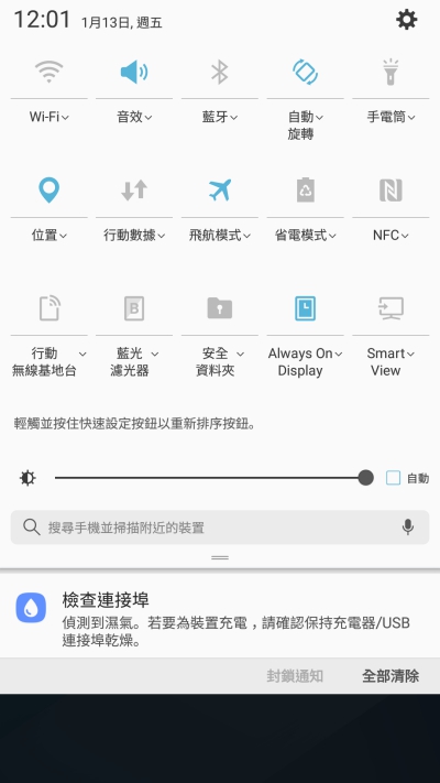當手機碰過水後,如果出現偵測到濕氣的話,記得也可以先放一下,等待連接埠乾燥後再進行充電比較好哦。