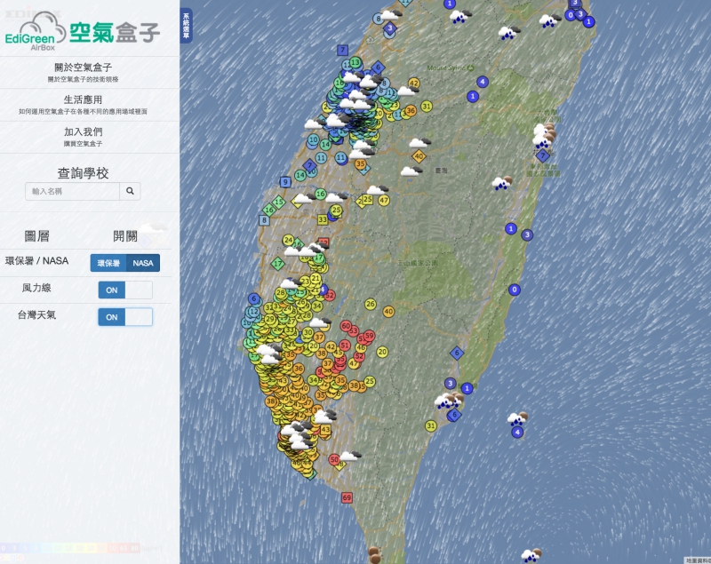 在左上角的系統選單裡還可以再切換環保署或是 NASA 的觀測數據,二者還蠻有差異的。