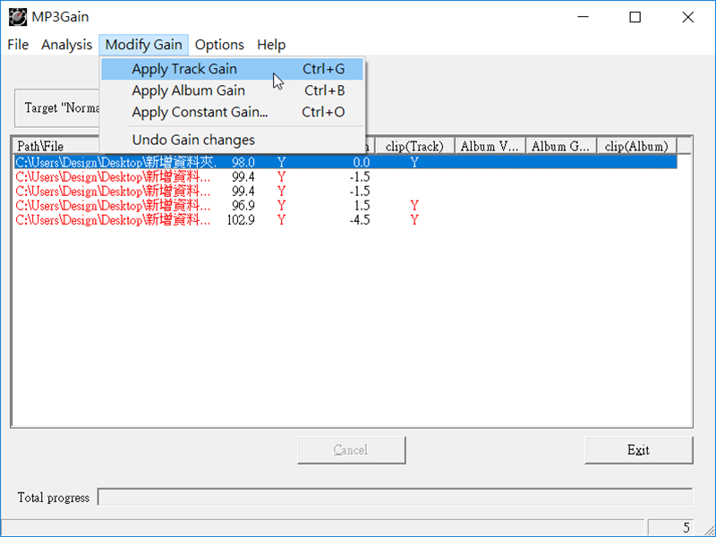 點擊「 Apply Track Gain 」套用音軌增益就會開始修正。
