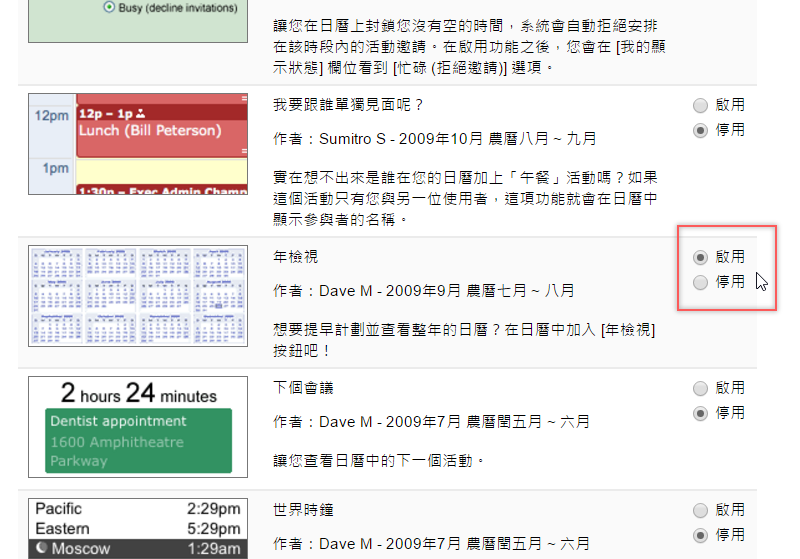 點開往下拉到「年檢視」功能,點擊「啟用」。