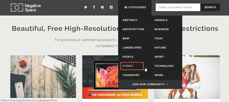 上排選單點開來共有 14 項分類,由字母順序排列,阿湯選擇 STREET 給大家看看。