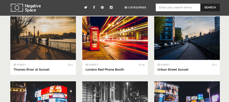 Negative Space 」同樣很厲害,內容都採用 CC0 授權的照片,除了可任意編修,還可以作為商業用途不需要標明出處,免註冊免登入,不過因為是 2017 年才新建立的網站,目前照片數量不多大概不到五百張,但類別豐富,基本的建築、風景、人物、動物、食物、商業、黑白等都有,照片品質很好解析度也夠高,重點是專業攝影師拍攝的看起來就很舒服啊。