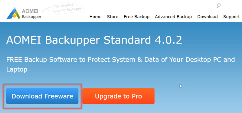 先到 AOMEI Backupper 官網,點選「 Download Freeware 」進行下載。