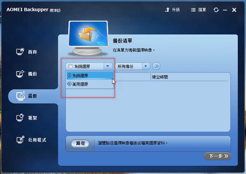 當需要還原的時候,就可以看當初備份的狀況來選擇了,很簡單吧。