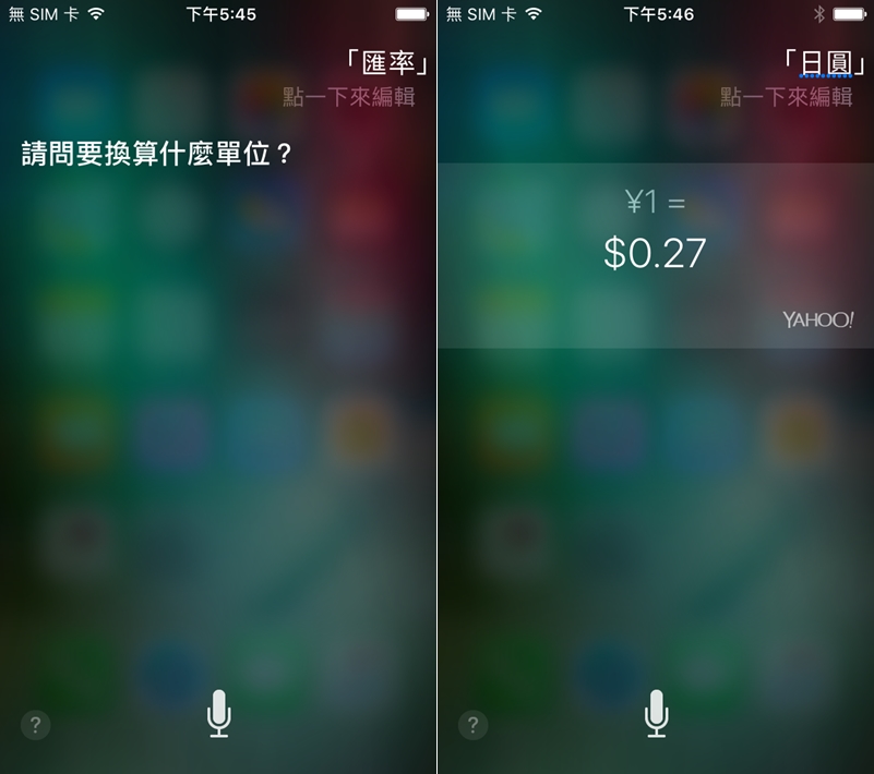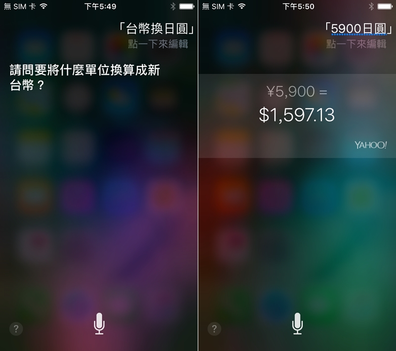 試試用「台幣換日圓」來問, Siri 還問我什麼單位(到底是 Siri 智商低還是阿湯發音不清楚),但跟它說「 5900 日圓」還是會跟你講答案。