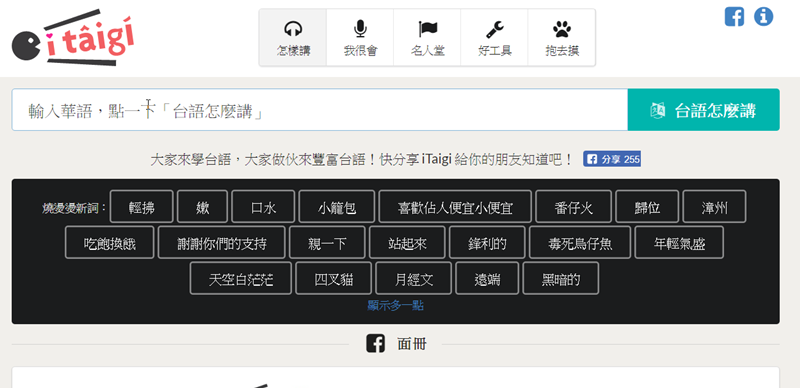 首頁就可以輸入想知道的台語,也可以看到目前熱門的新詞,好奇的可以點進去看看,有的阿湯還真的不知道怎麼念。