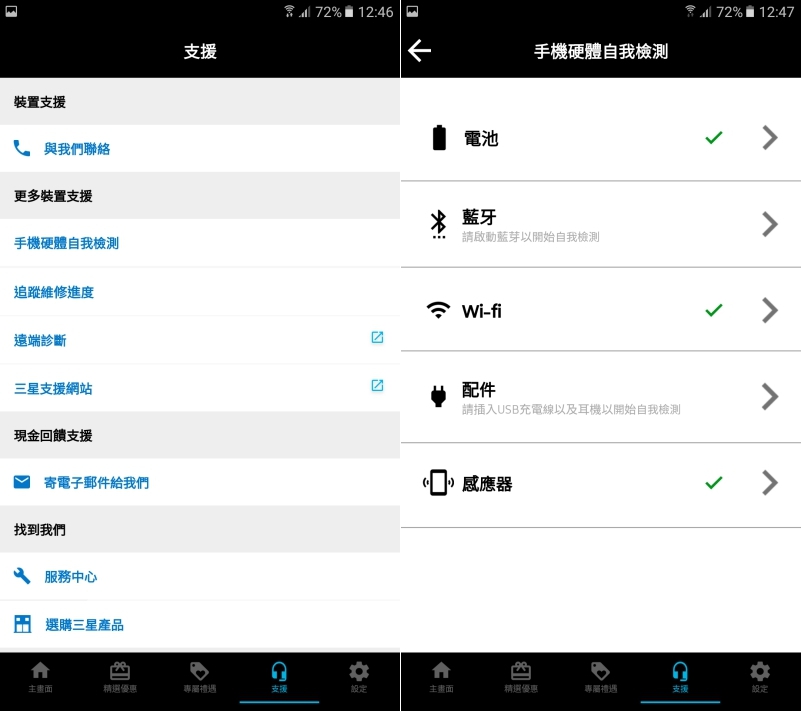 當發現任何問題時,也能先透過「手機硬體自我檢測」功能進行檢查,確認手機基本的硬體狀況,透過遠端診斷,在操作上有任何問題除了透過電話及寫信之外,還能一對一的與客服即時聊天進行問題排解。