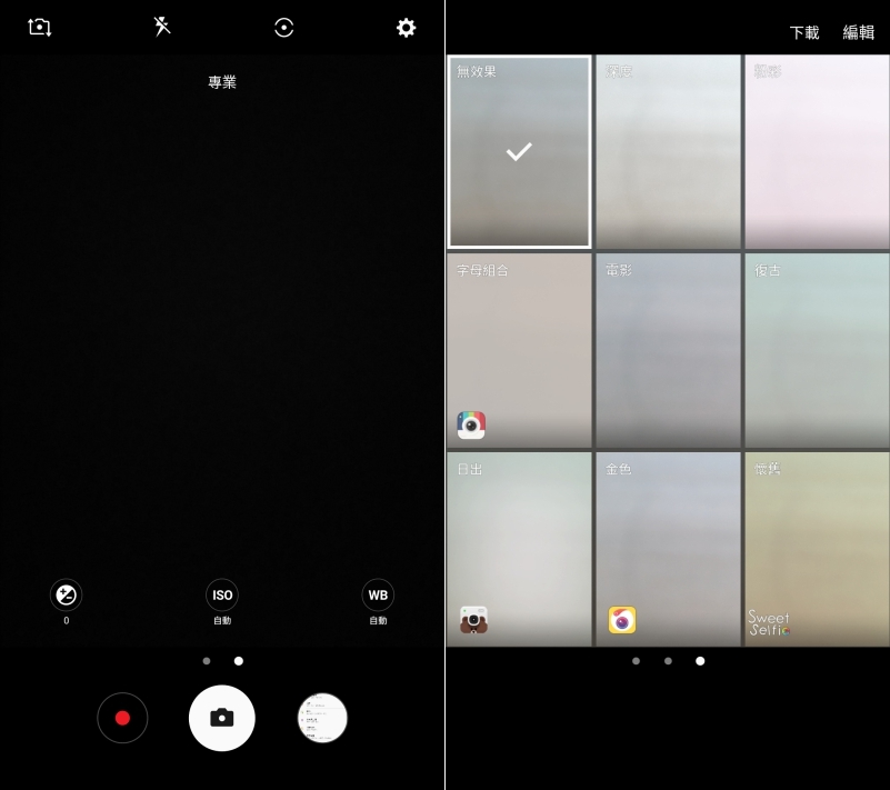 從 2016 年推出的新版介面後,相機介面真的變的很方便,只要記得「上下左右」就可以了,上下可以切換前後鏡頭,往左則是可以切換拍照模式,往右則是選擇濾鏡,非常的方便。