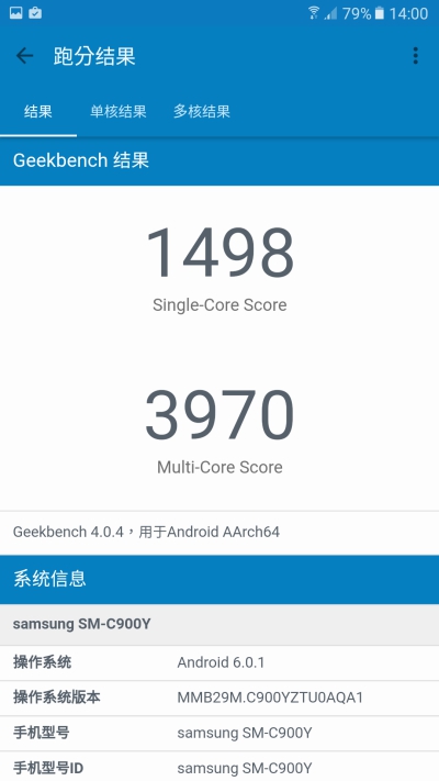 Geekbench 4 在單核心處理器部份獲得 1498 分,多核心則是 3970 分。