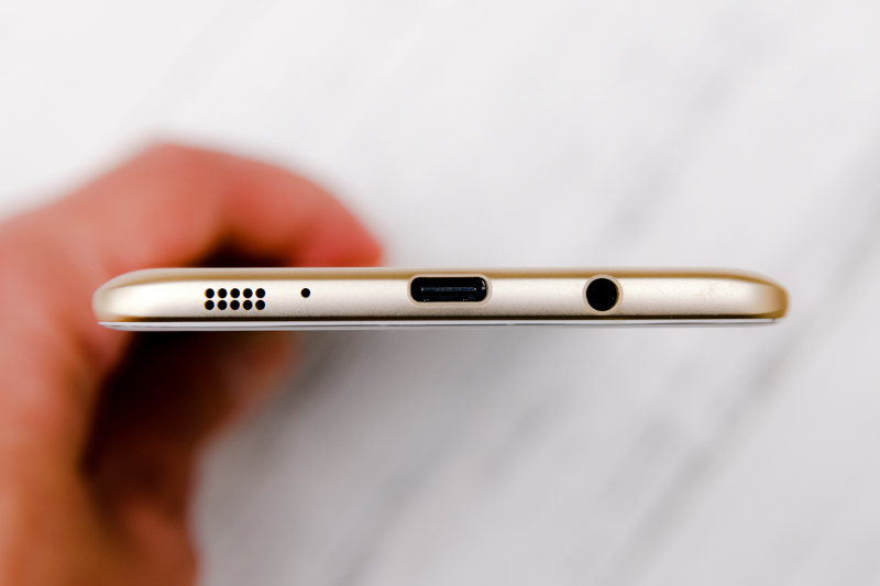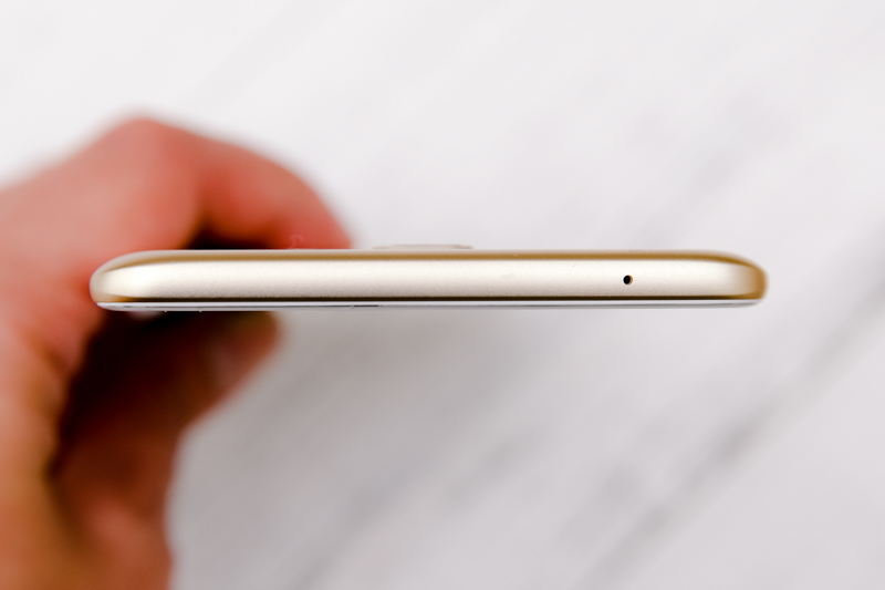 上方僅降噪麥克風收音孔,從上方也可以看到在邊角的部份還有往內削薄,這會讓手機看起來更加的纖薄,也增加不少握感的舒適度。