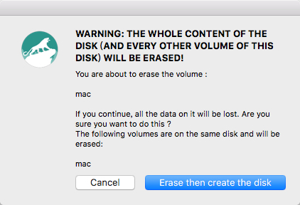 點擊「Erase then create the disk」後會將你的隨身碟完整的清除。