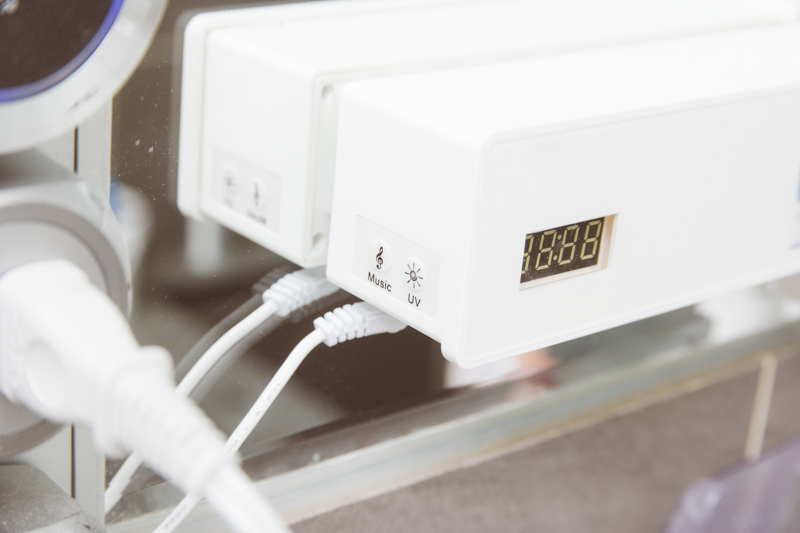打開消毒器來看,左邊有計時器,右邊裡面為紫外線殺菌燈。
