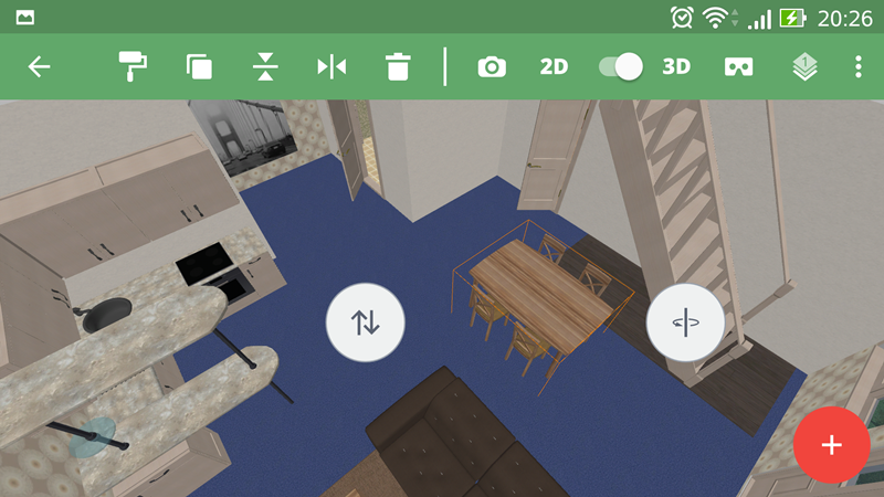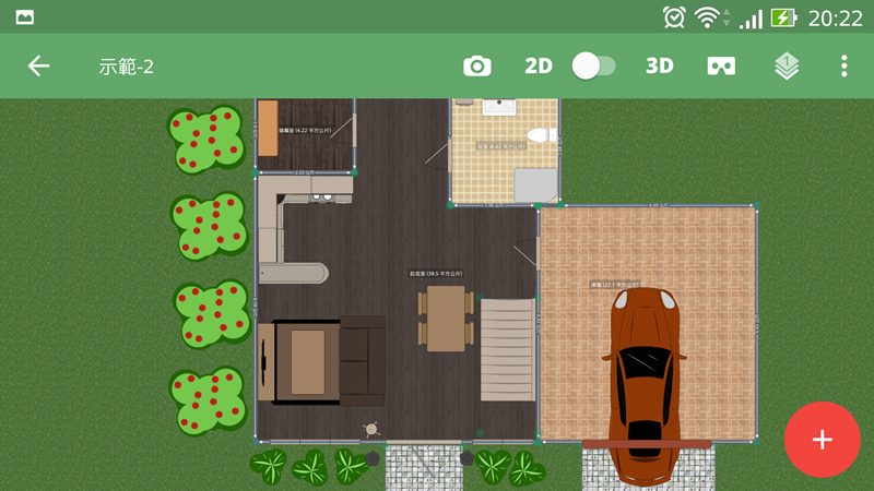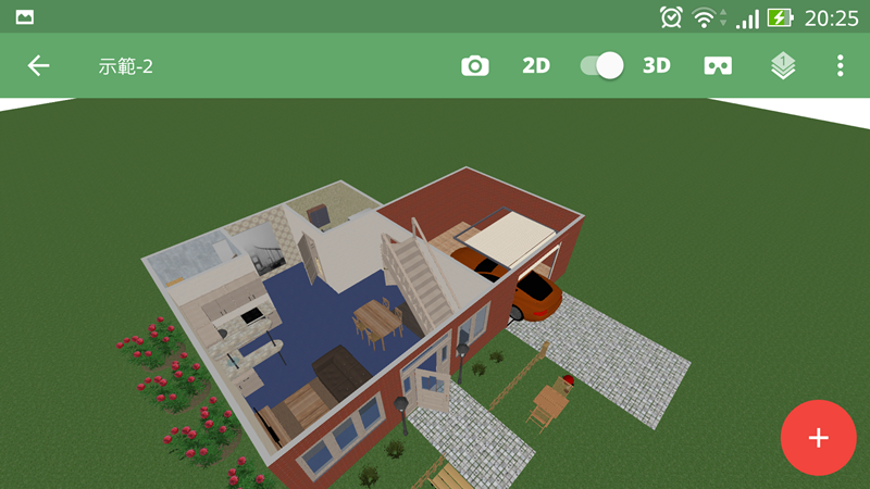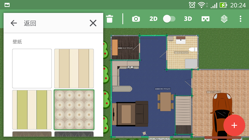 馬上從 2D 變身 3D 顯示,整間房子瞬間立體起來,可以清楚看到壁紙的花色。