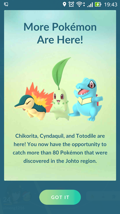 二代寶可夢上線後再度掀起好久不見的抓寶熱潮,看到路上拿著手機的「訓練師」越來越多,阿湯也忍不住開來玩了,據說這次多了 80 幾種金銀版的寶可夢,包括二代「御三家」火球鼠、菊草葉、小鋸鱷,及官方影片出現的毽子草、叉字蝠、盔甲鳥等,不只介面更新,還有新道具和免費的玩家裝飾品,原本舊有的寶可夢也可透過道具進化成第二代,捕捉機率也調高了,不多說,跟阿湯一起來看看吧。