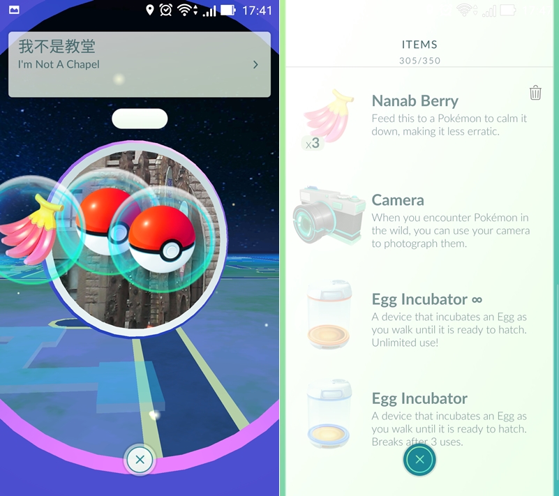 跳出來背後就出現一隻沒看過的了,趕快抓!發現更改球跟道具的位置變到下面,直接在捕捉的頁面就可以拿出來用,不用跳到其他頁面,還蠻方便的。