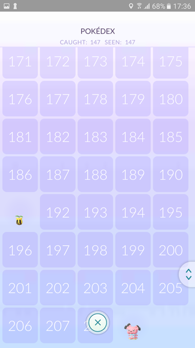 到圖鑑一看多了好多新的,剛抓到的分別是 191 號與 209 號,阿湯這邊目前只新增到 209,抓到 209 後面的寶可夢應該就會陸續出現。