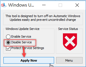點選「Disable Service」後,按「Apply Now」,就會變成紅色打叉的圖示,表示自動更新功能已成功關閉。