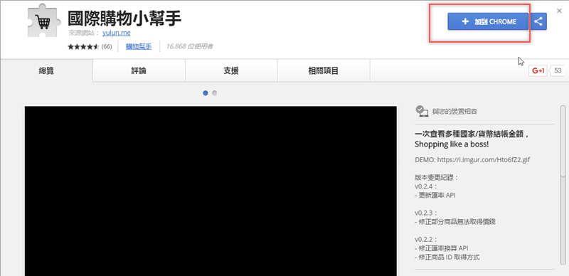 首先安裝國際購物小幫手,目前只有 Google Chrome 外掛版本。