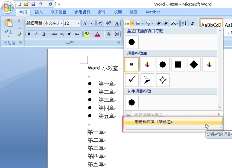 選擇「定義新的項目符號」。