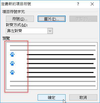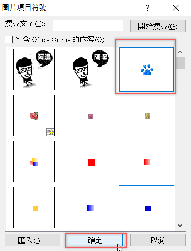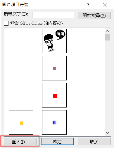 如何建立自訂項目符號為特定圖片?