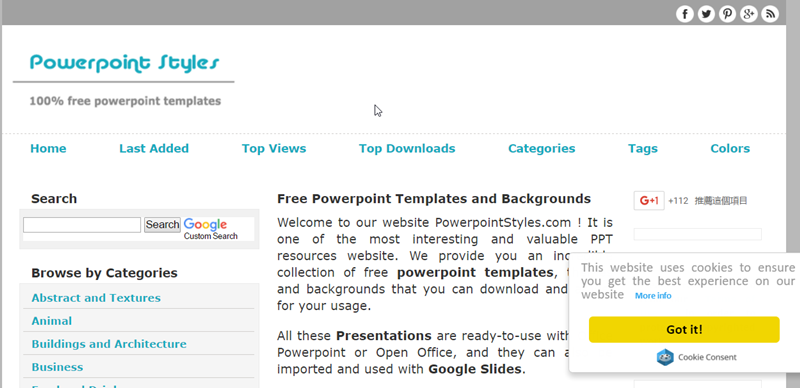 這個網站的模板主要設計給 Google 投影片,但可以當作 PPT 模板下載,以主題分類,有正式、簡單、創意、優雅、商業等,整個網站都是免費的。