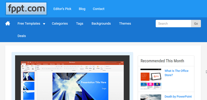 這個網站很單純都是 PPT 模板,右邊主題分類也很清楚,基本工作生活會用到的類型都有,但總數不多大概不到 500 種。